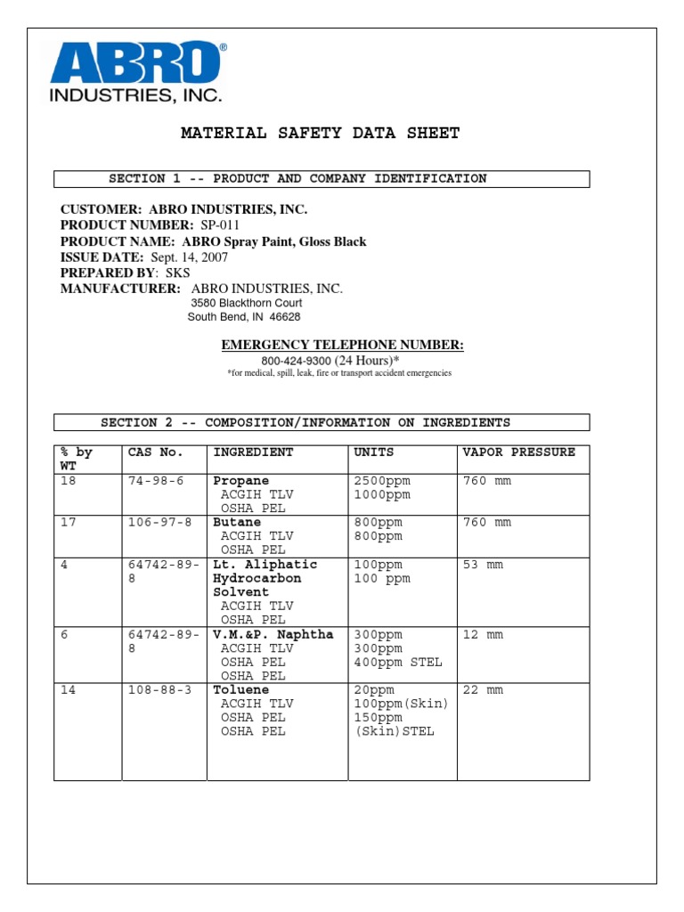 Abro spray paint safety data sheet download sp msds ghs clp.